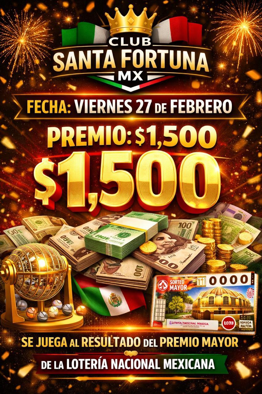 Club Santa Fortuna Realiza Sorteos entre amigos, 100% transparentes y basados en la Lotería Nacional o Tris Clásico.